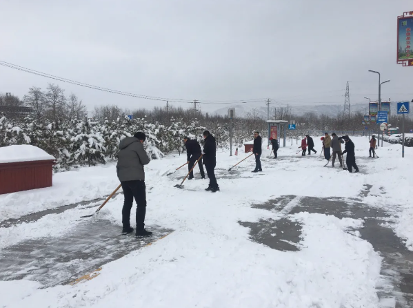 2022-02-07为保证春节后广大职工安全出行,2月6日,公司团委组织全体团员及青年员工开展园区内积雪清扫活动。 寒风凛冽,阻挡不了广大团员及青年职工的热情,大家齐心协力,分工明确,忙碌的身影随处可见。经过两个小时的不懈努力,积雪清扫成效明显,有效保障了广大